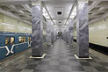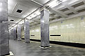 Станция "Сокольники". Станционный зал имеет два ряда по 23 колонны квадратного сечения. Кколонны облицованы серо-голубым уральским мрамором "уфалей", а у основания - марблитом.