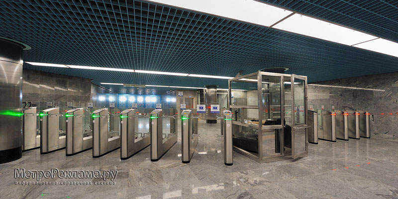 Станция "Алма-Атинская". Северный подземный вестибюль станции. Турникеты по входу пассажиров на станцию
