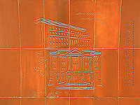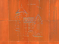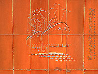 Станция "Рижская" станционный зал, В нишах пилонов выполнены барельефы с видами города Риги из латвийской керамики.