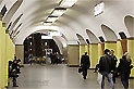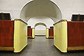 Станция метро "Рижская", станционный зал.  У торцевой стены установлено информационное панно "Города мира в Московском метро"