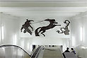 Стены кассовых залов украшены панно. Торцевые стены порталов над лестничными спусками от вестибюлей к станционному залу украшены горельефами "Могучие Рысаки" на тему конного спорта (скульптор Э.М.Ладыгин). Пол станционного зала вымощен гранитом двух оттенков, черным - произвольный геометрический рисунок симмеиричный относительно оси станционного зала. Кромки платформ по приёму и отправлению поездов выложены закалённым гранитом повышенной прочности. Путевые стены облицованы светлым мрамором.