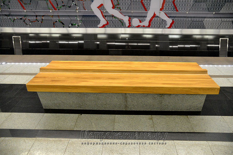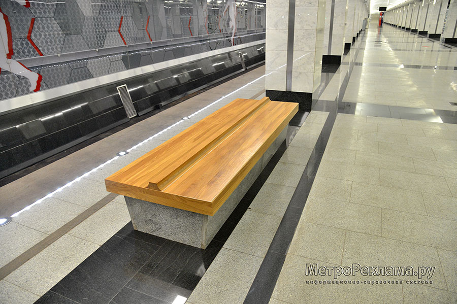 Станция "СПАРТАК". Станционный зал. Оригинальные скамьи для пассажиров.