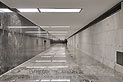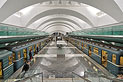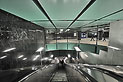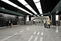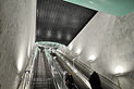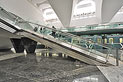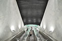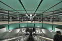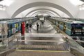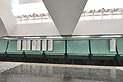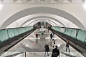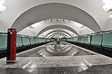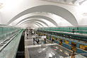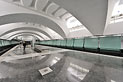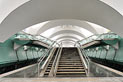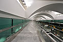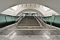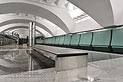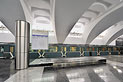 С широких балконов с прозрачными боковыми панелями открывается объёмная структура станционного зала. Венчает станционный свод череда рельефных арок, подчёркнутая мягким светом скрытых за карнизами светильников.