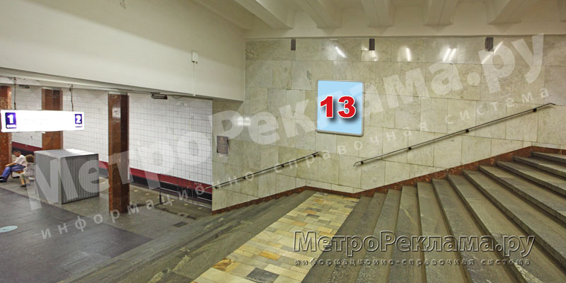 Площадка лестничного марша от восточного вестибюля к станционному залу,последний вагон от ст. "Варшавская", правая стена по входу пассажиров.