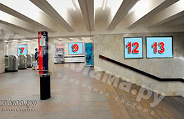 разнообразные щиты в вестибюлях, станционных залах и межстанционных